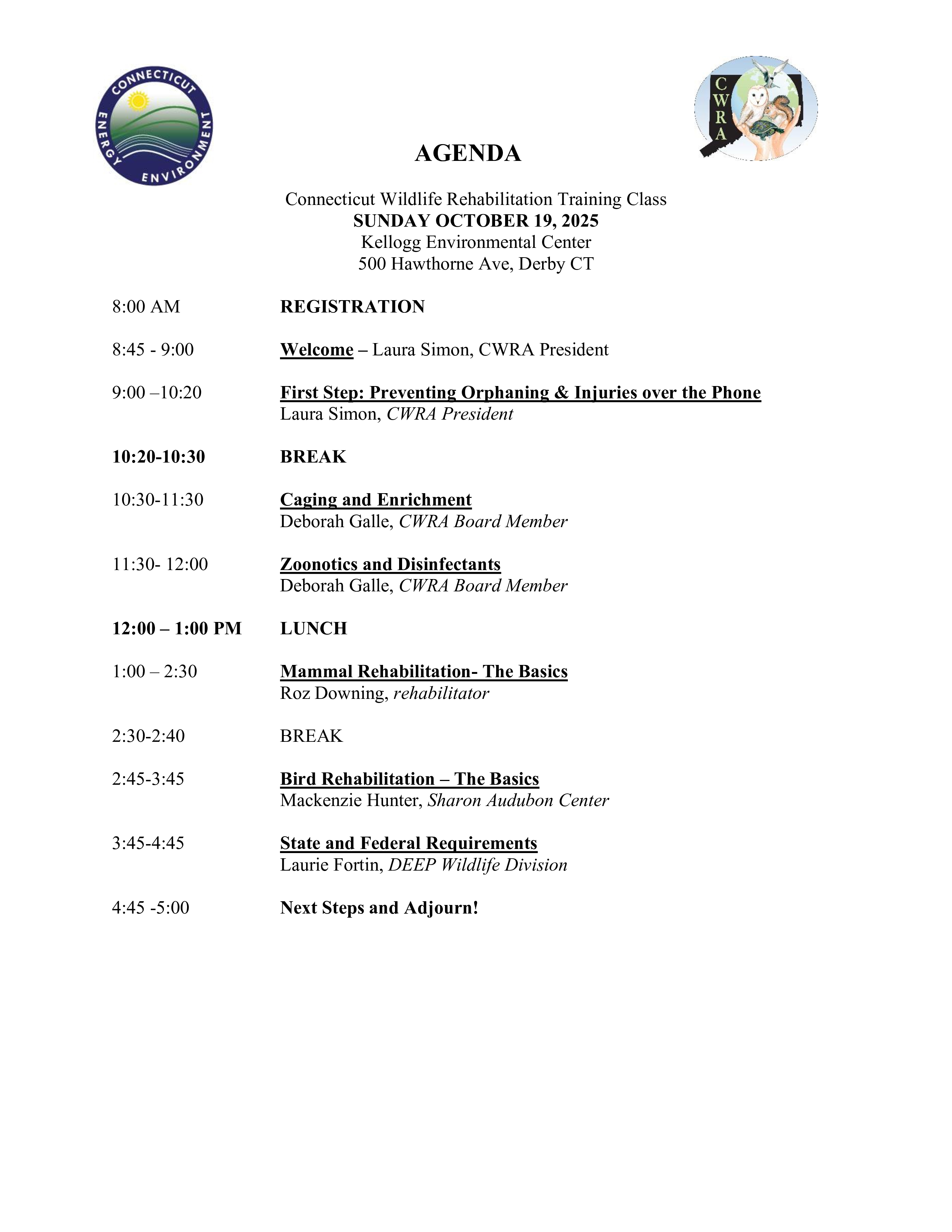 Have you ever wanted to make a difference for Connecticut’s wildlife? Join us for the New Wildlife Rehabilitator Training on Sunday, October 19, 2025, at the Kellogg Environmental Center in Derby, CT!